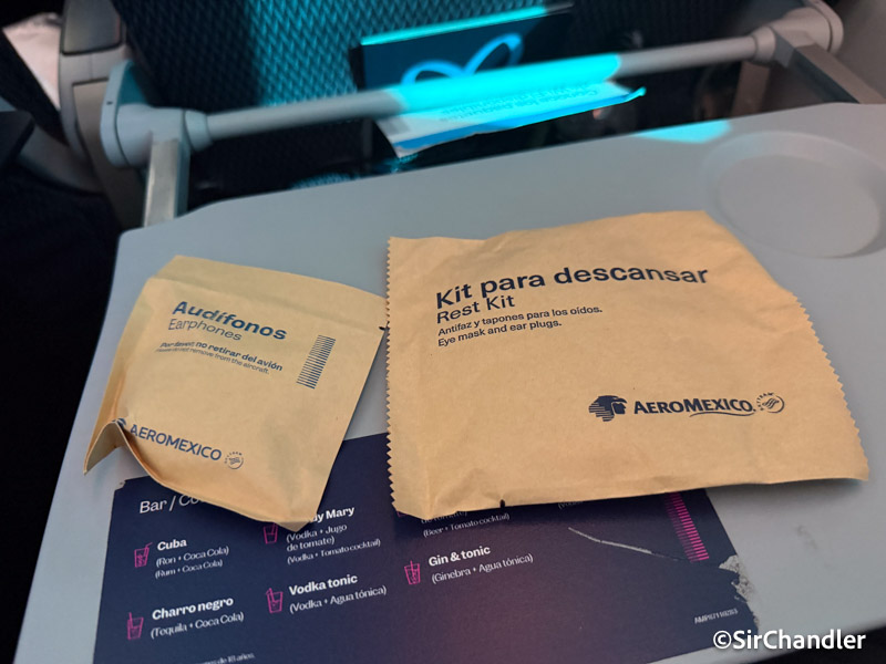 Pasaron a darnos auriculares y un kit con antifaz y tapones para el oído. Despegamos con unos minutos de demora