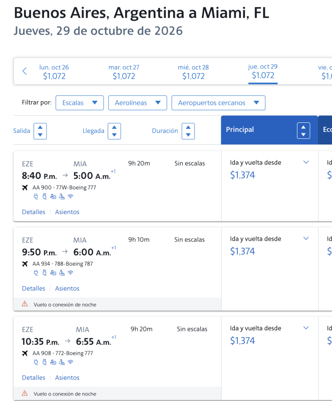 Al momento de hacer este post, American Airlines aun mantiene los tres vuelos de Miami, pero no les debe quedar mucho tiempo así, para completar el informe de las tres de Estados Unidos.