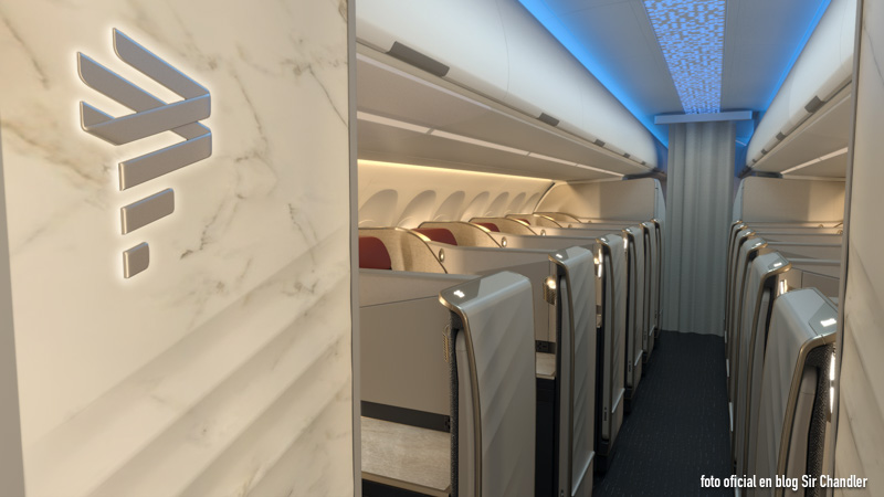 incluyendo el trabajo conjunto con Thompson Aero Seating en la personalización del asiento de Business Class, la iluminación y las terminaciones interiores. El diseño busca reflejar el