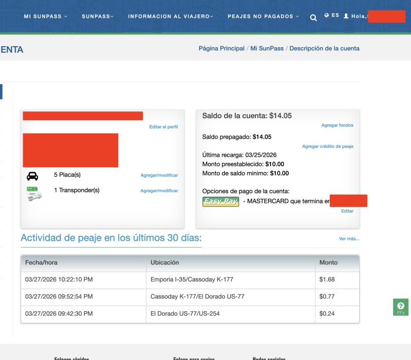 Pero así pude ver todo el estado de cuenta y podría eliminar o sumar placas, que es lo que normalmente se hace al llegar a USA. Pero no tendrán problemas en hacerlo allá directo con el teléfono navegando ya en territorio de USA
