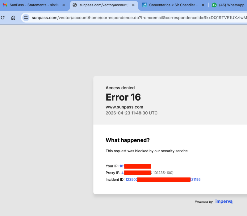 Me metí en la web y saltó el error de bloqueo por IP