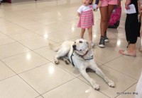 Perro chileno buscando drogas en el aeropuerto muy relajadamente