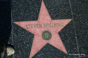 En la puerta del teatro chino, está la estrella de un genio de la industria....